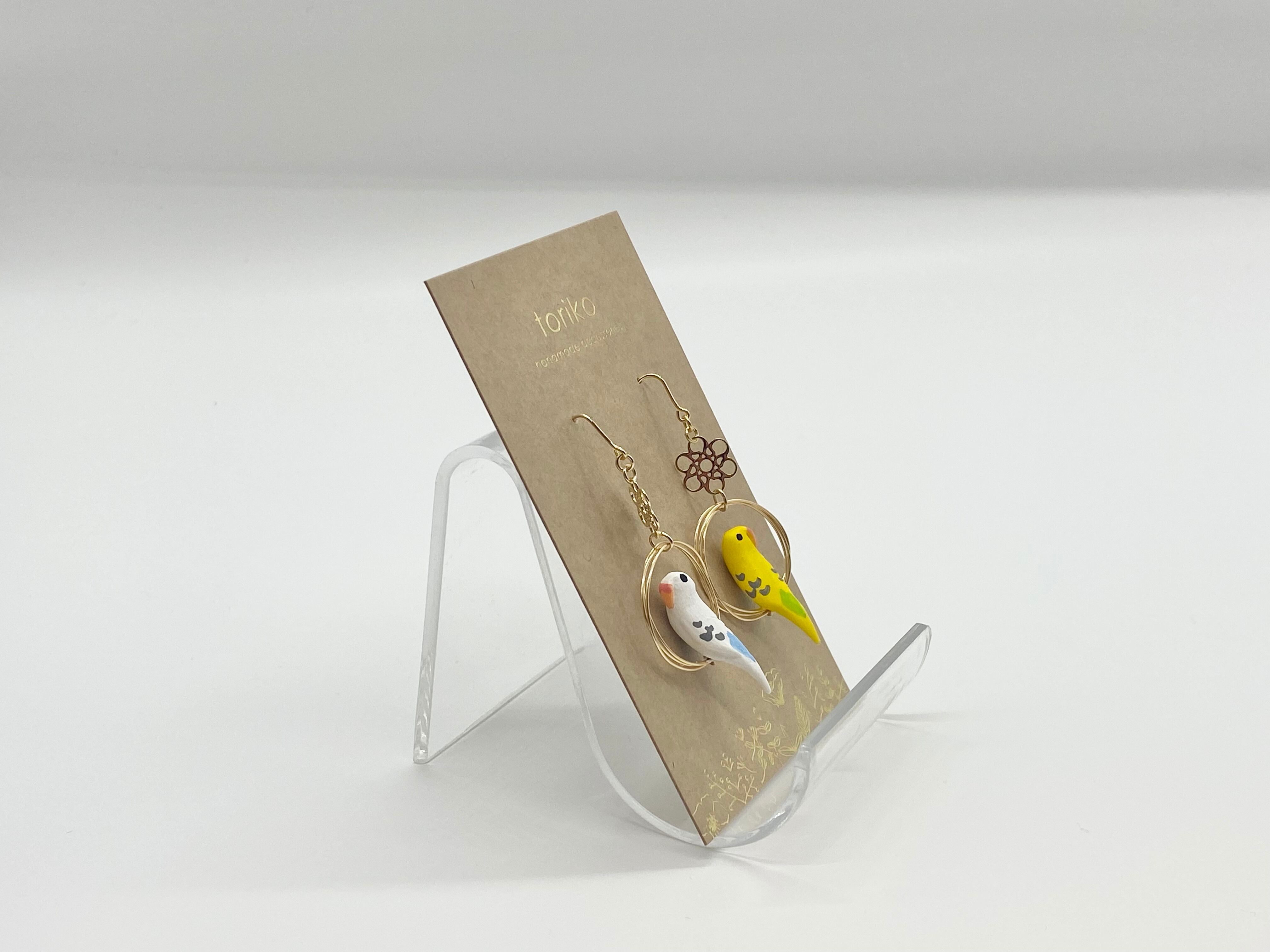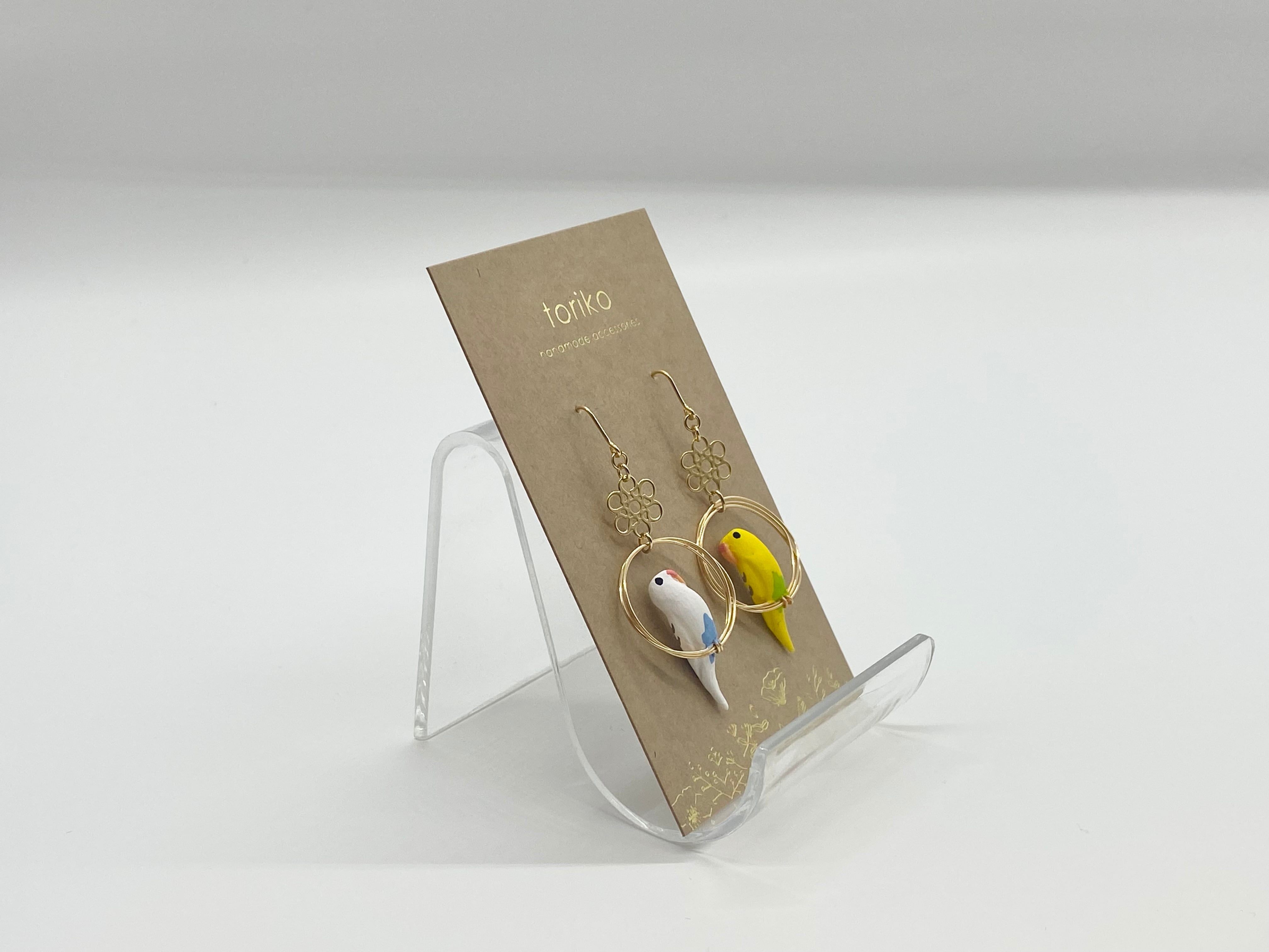 セキセイインコ(黄×白)花パーツ付ピアス・イヤリング