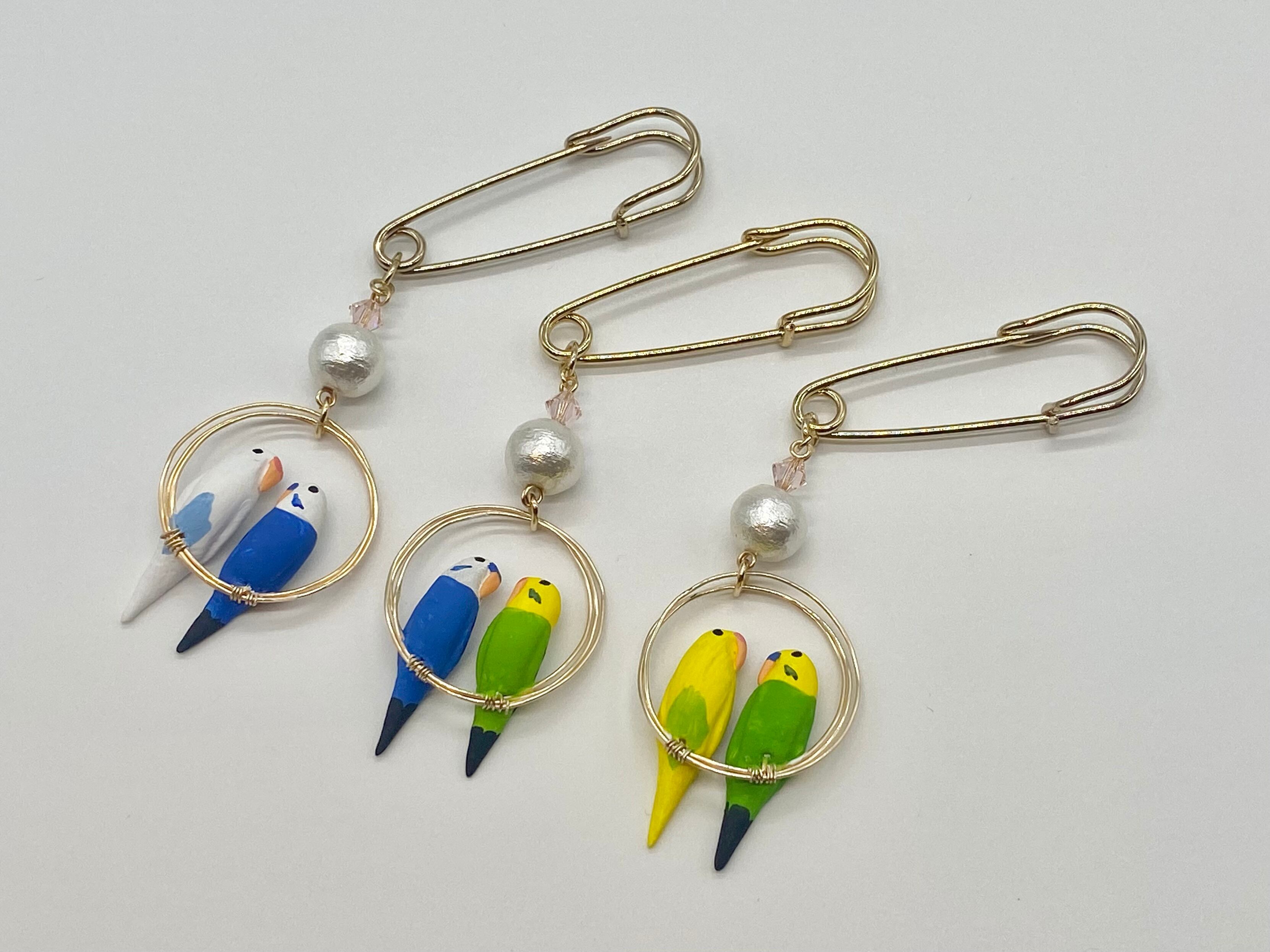 2羽乗りセキセイインコ(黄×緑)ブローチ