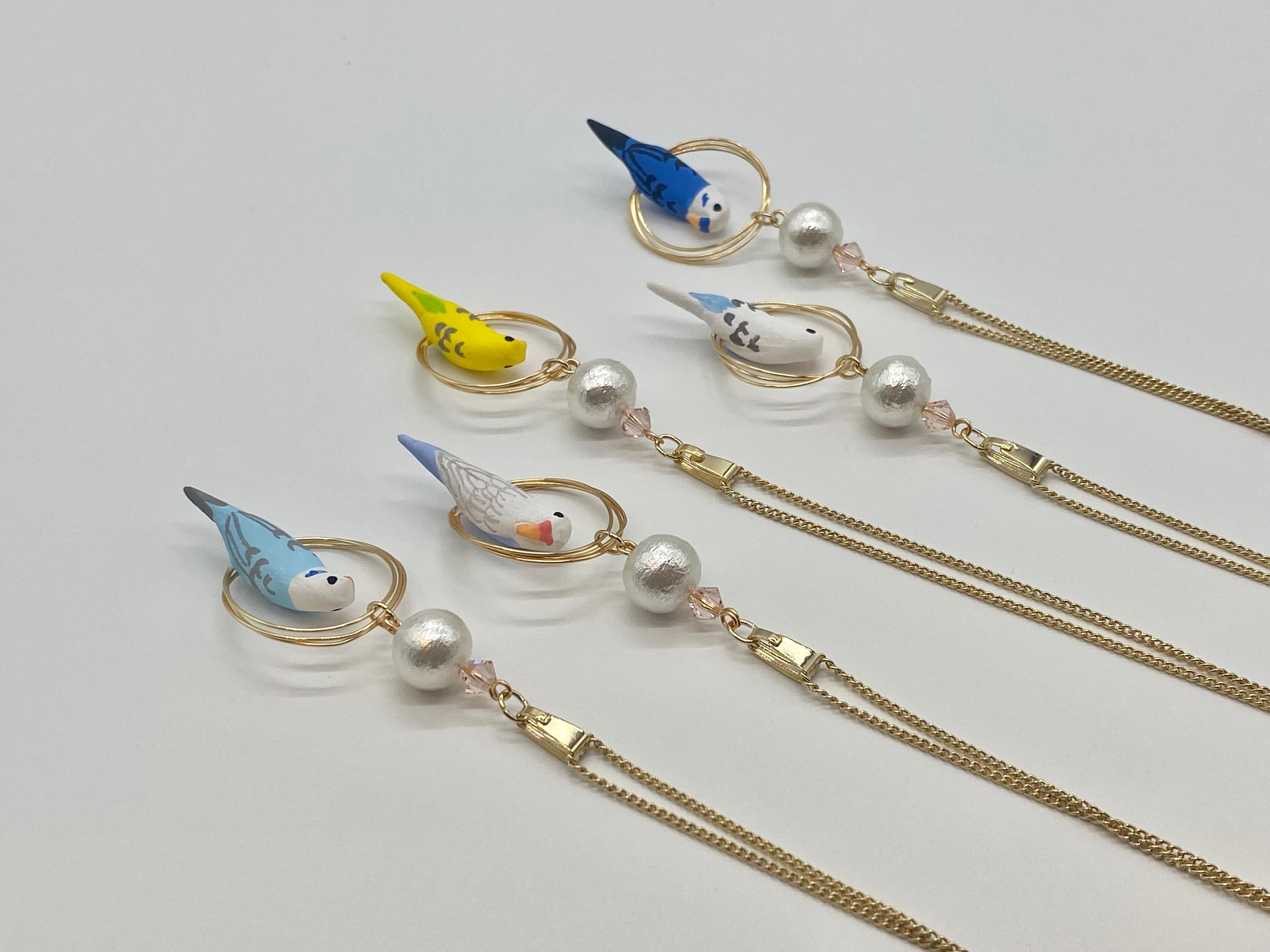 セキセイインコ(ラベンダー) コットンパール付ペンダント