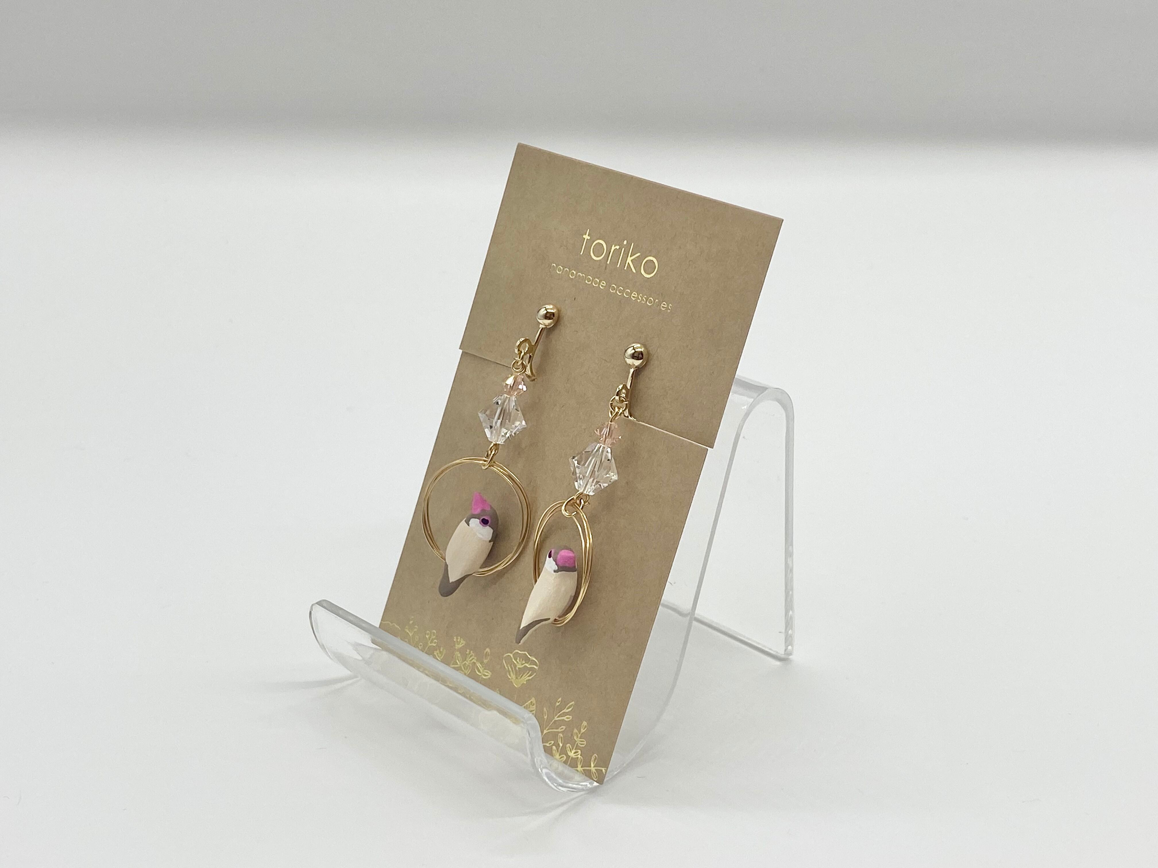 文鳥(シナモン)クリスタル付ピアス・イヤリング