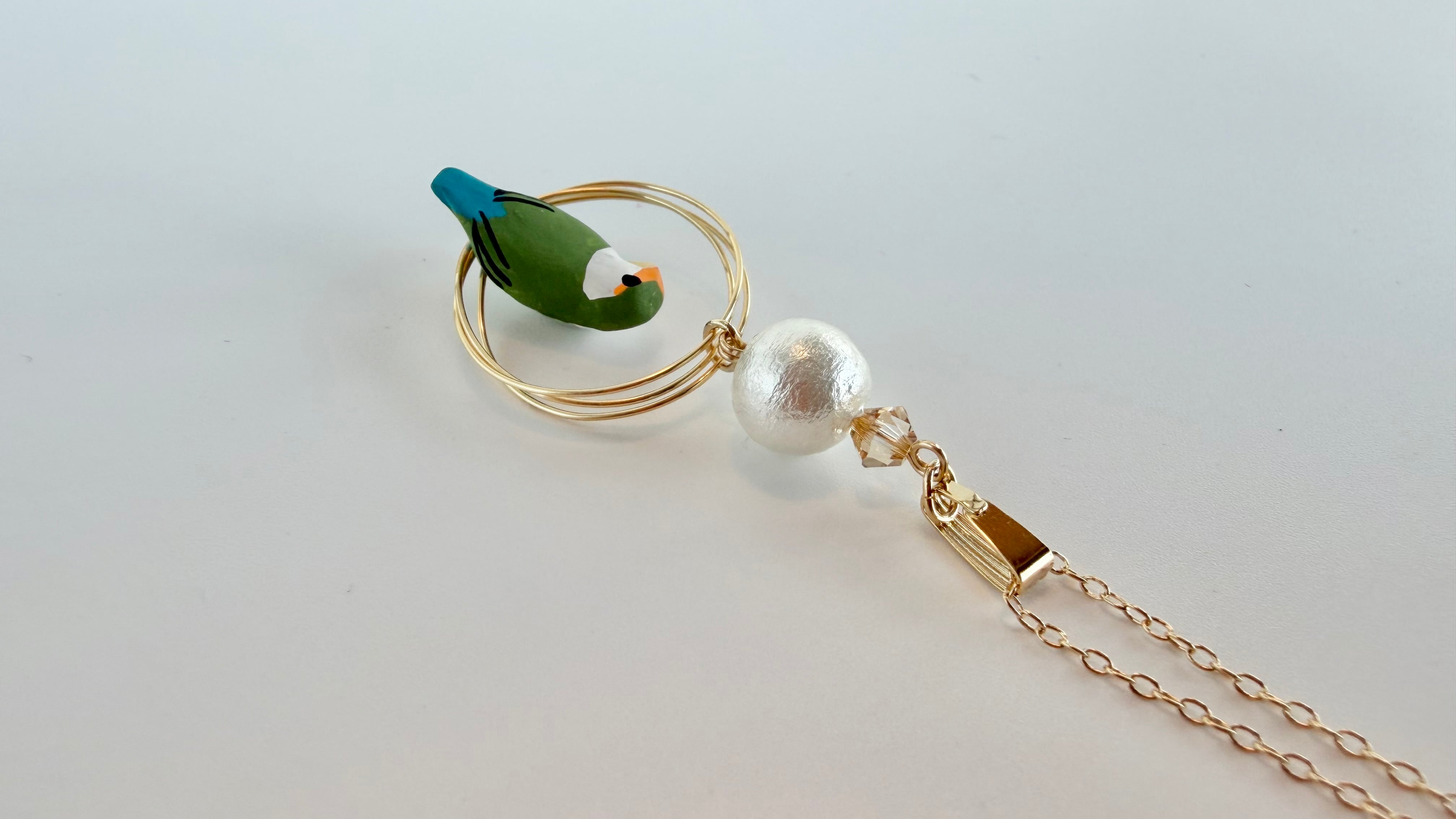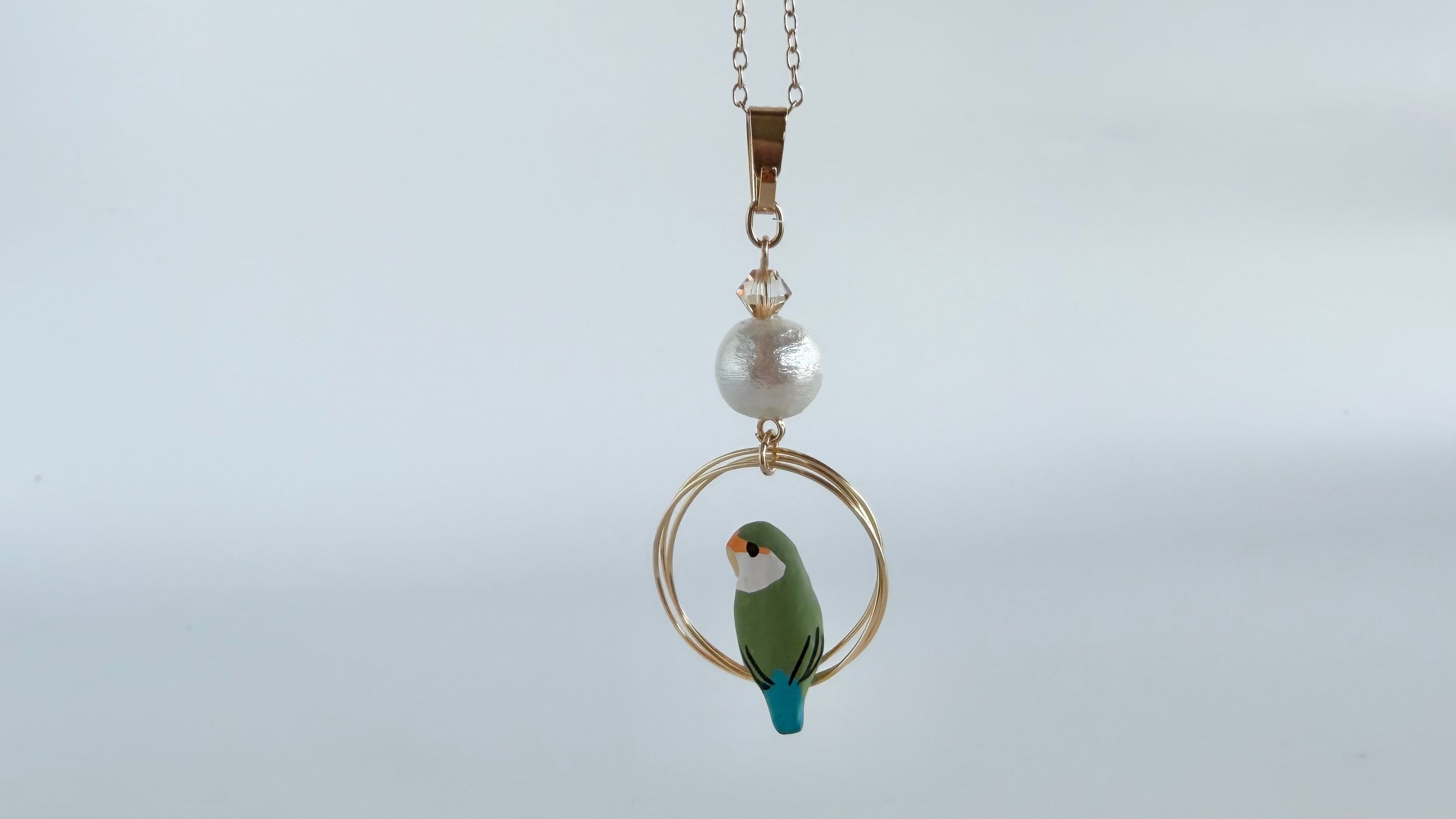 コザクラインコ(シーグリーン)コットンパール付ペンダント