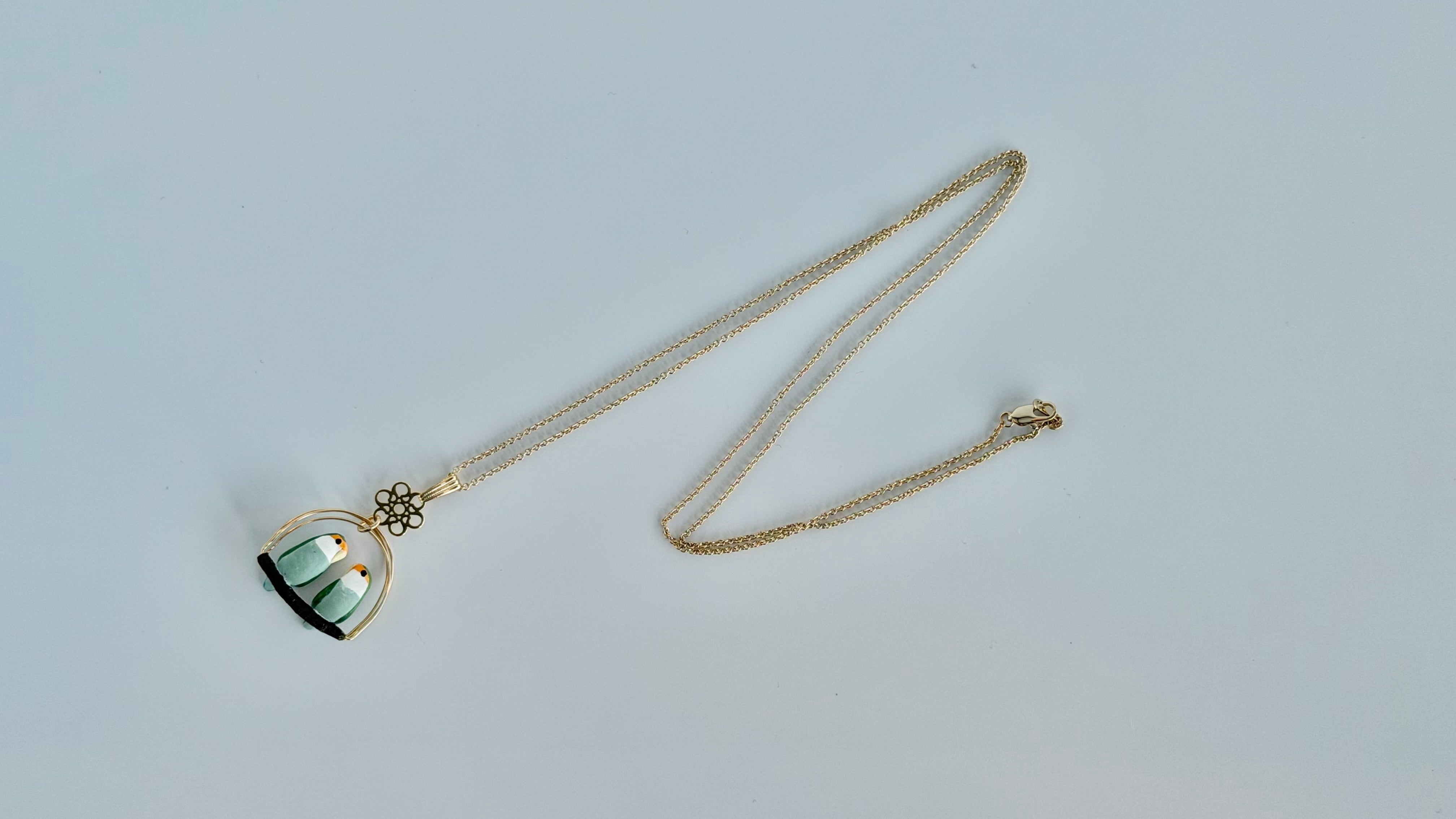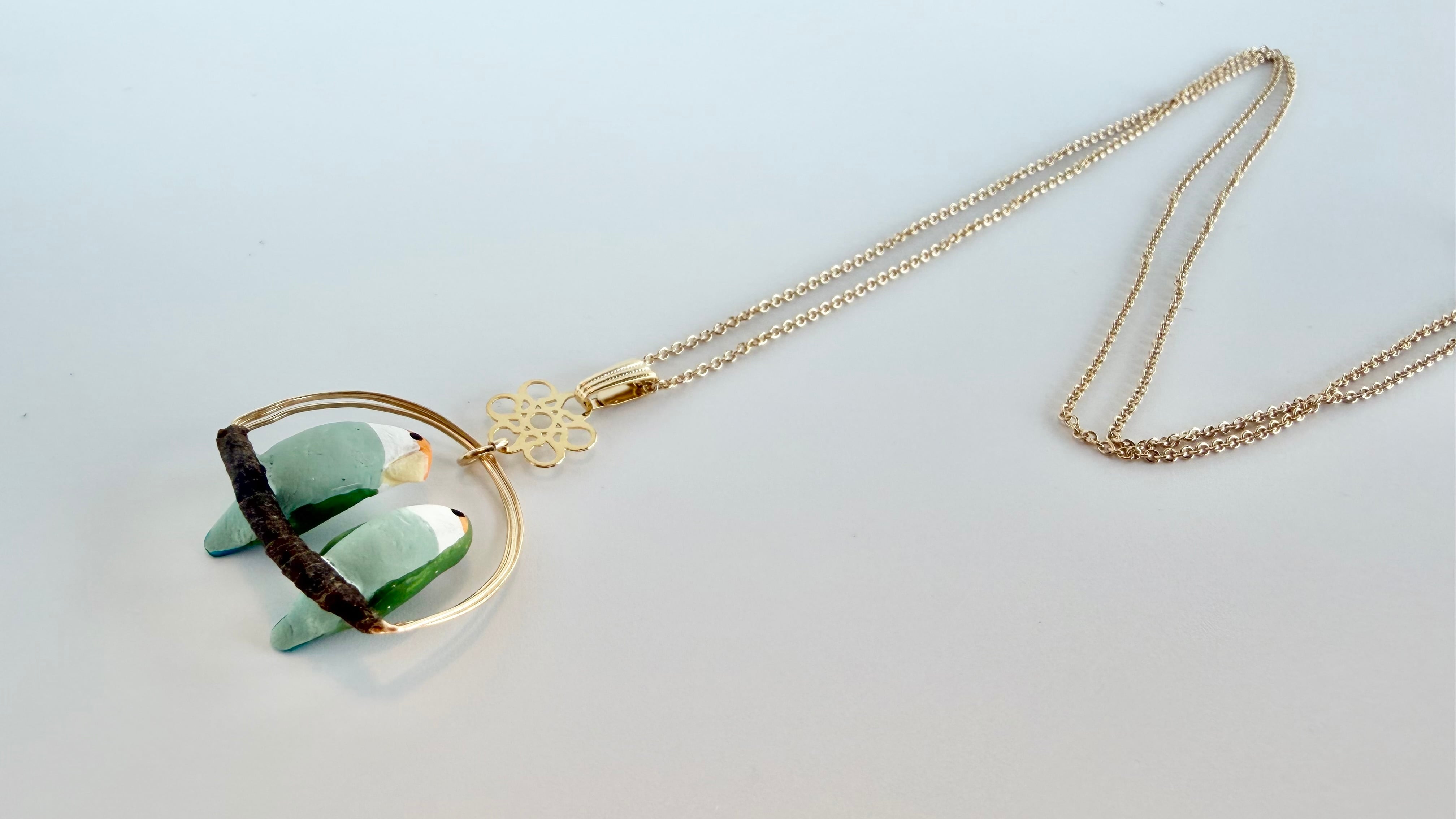 枝2羽乗りコザクラインコ(シーグリーン)のペンダント