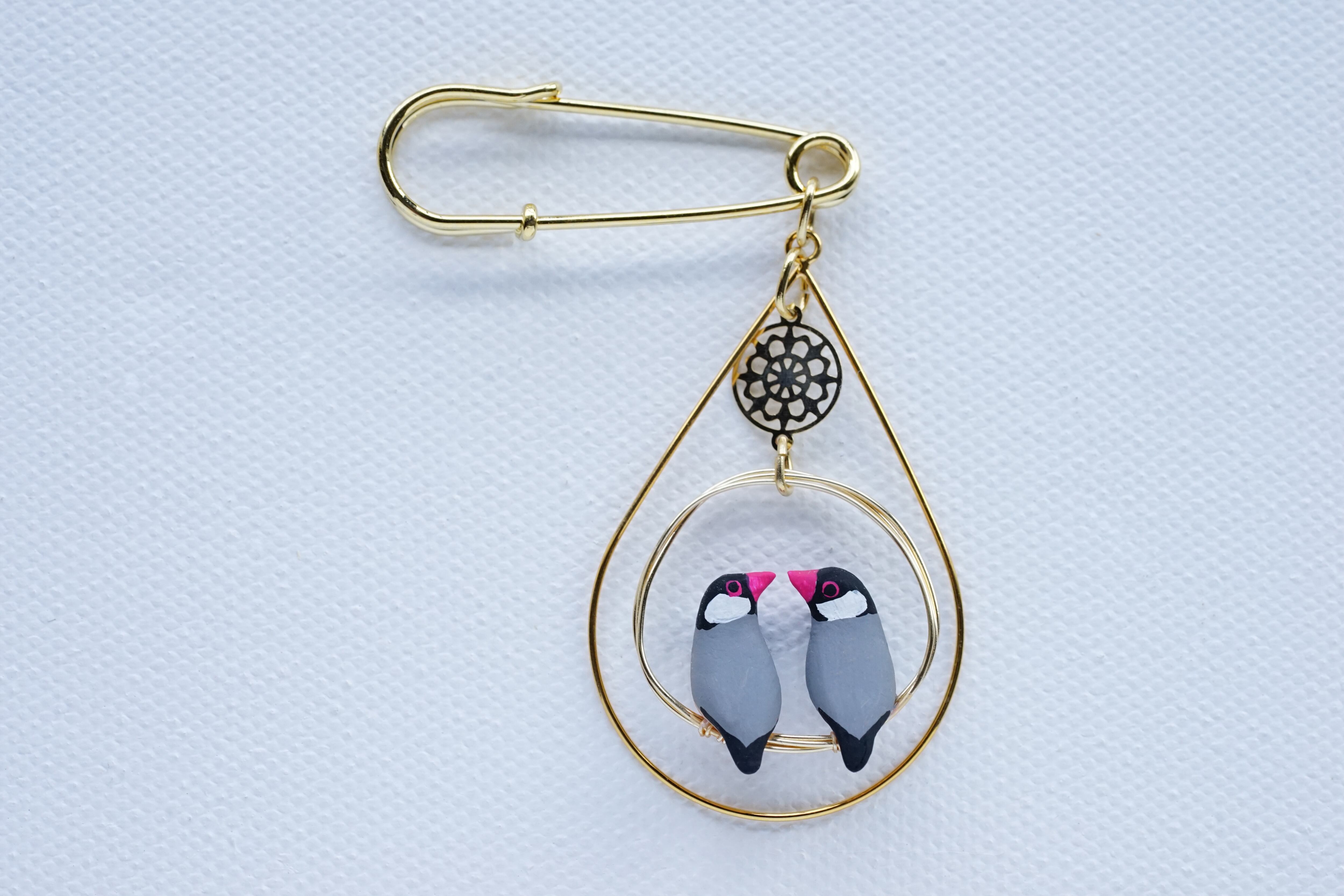 2羽乗り文鳥のブローチ